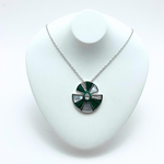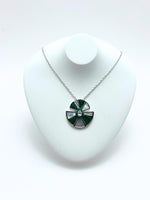 Sterling Silver Necklace with Malachite,Mother-of-Pearl,and Cubic Zirconia Pendant